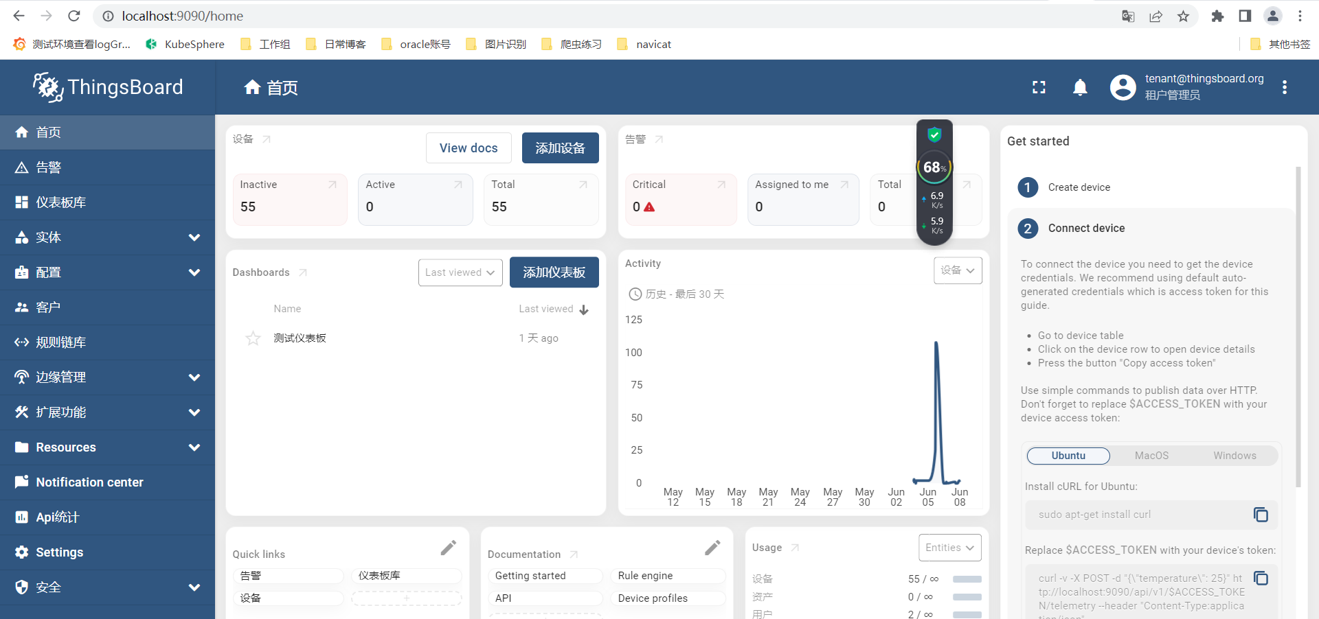 先执行ThingsboardInstallApplication 的main方法,会自动的在pgsql里面创建55张表,并且有一些初始化数据,管理员账号 sysadmin@thingsboard.org 密码 sysadmin