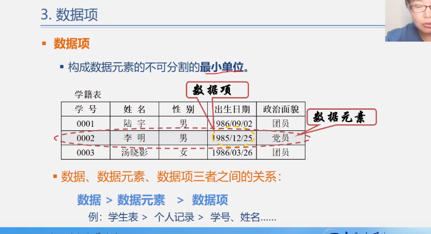数据、数据元素、数据项