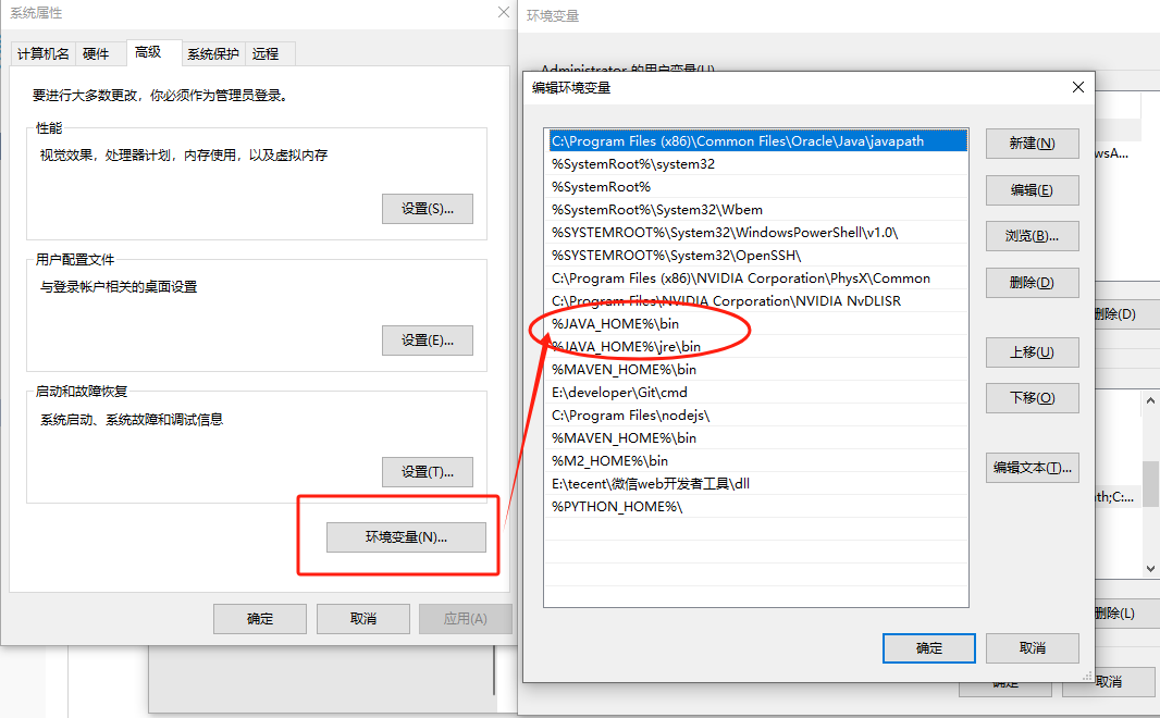 再在PATH变量中将该环境变量的bin目录添加到环境变量,如下图所示:
