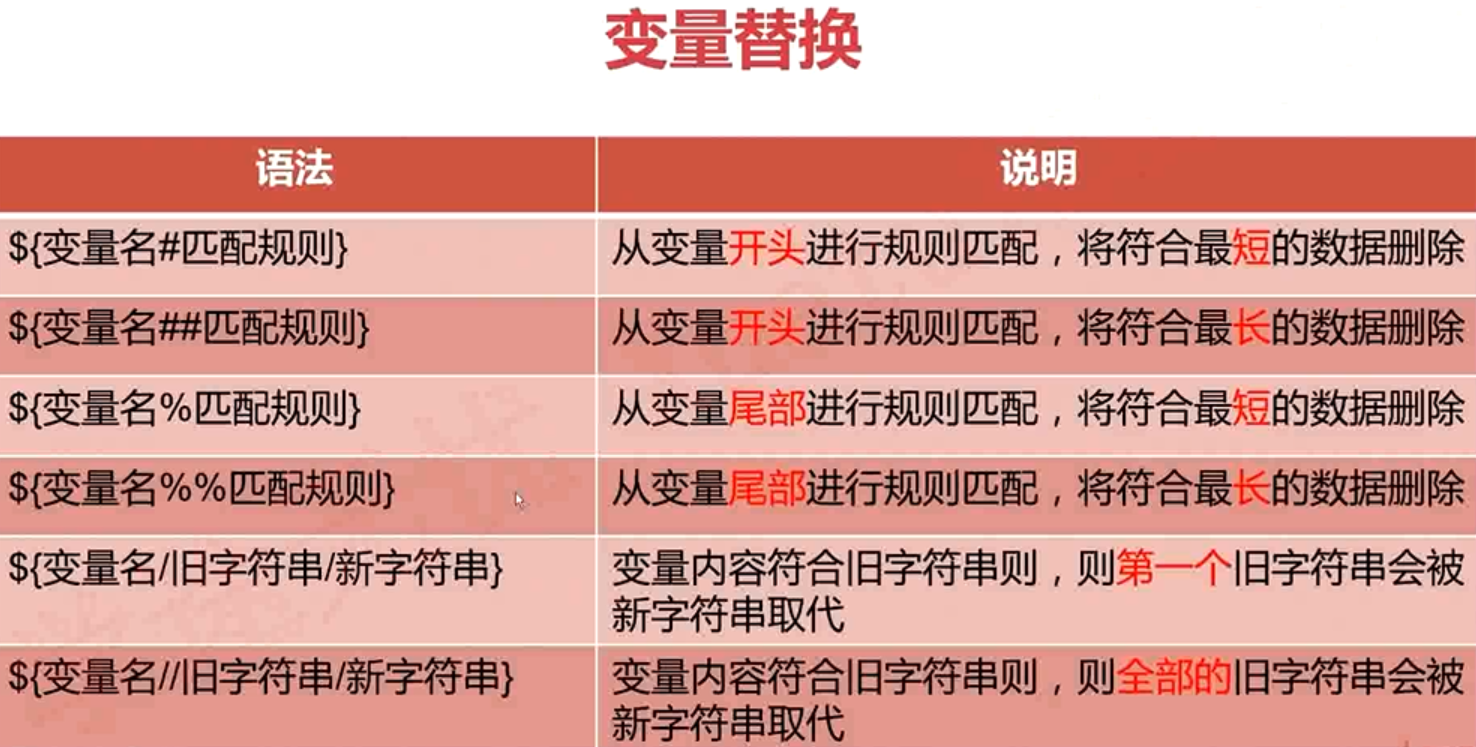 ${STR#SUBSTR},从$STR头查找匹配,删除最短匹配$SUBSTR的子串(非正常顺序)