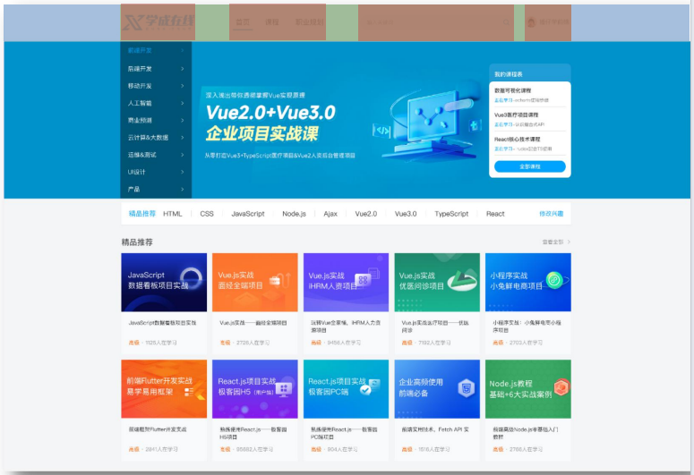 ○ 标签结构:通栏 > 版心 > logo + 导航 + 搜索 + 用户