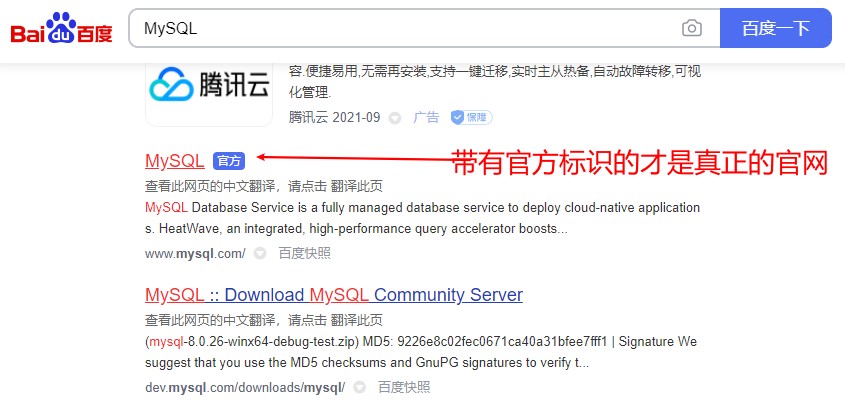 首先百度MySQL,当然也可以直接输入官网地址https://www.mysql.com/