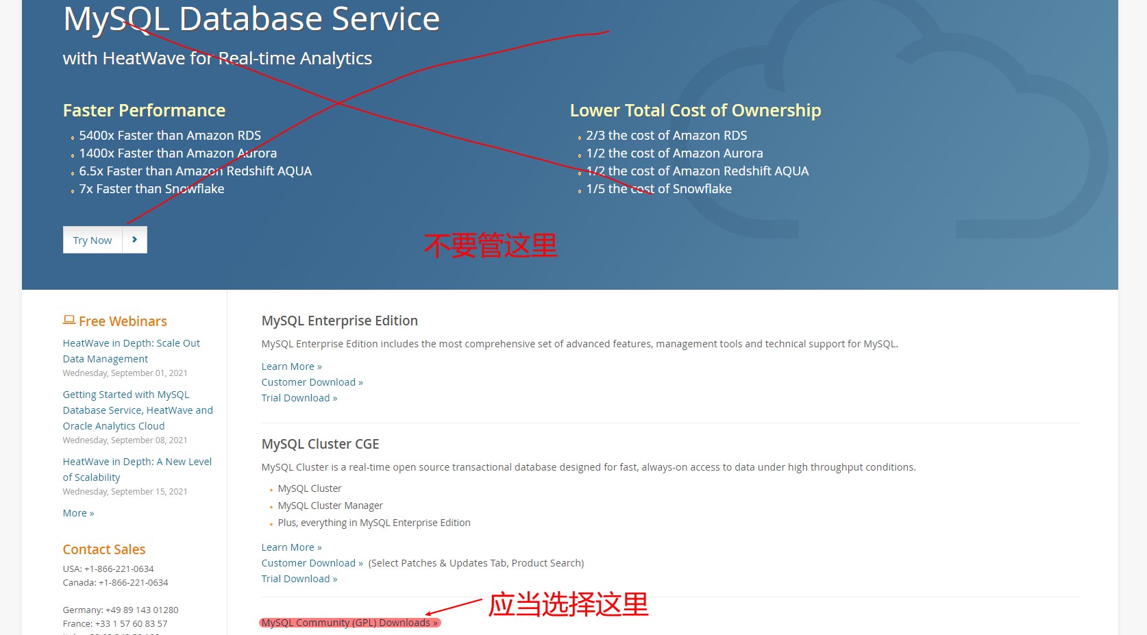 之后不要管推荐的版本,下拉寻找到"MySQL Community (GPL) downloads",点击之。