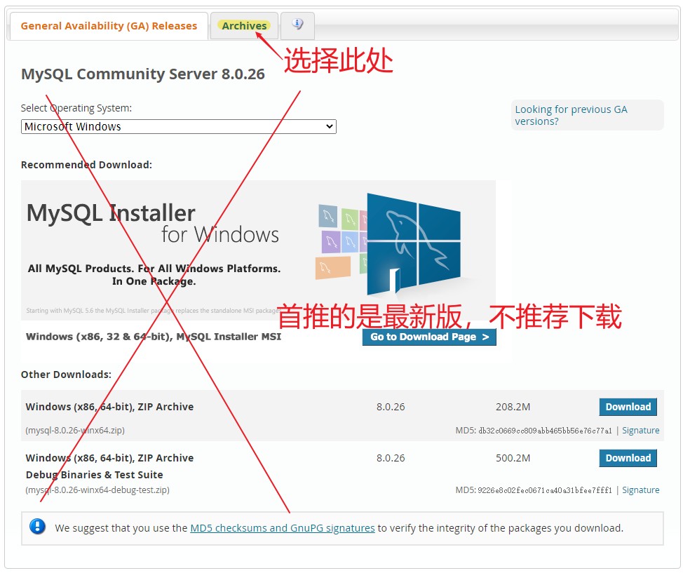 点击之后进入了下载页面,但是不推荐下载明面的这个,这是最新版,初学时暂不考虑使用。应当点击右上方的"Archives",进入时间轴选择老版本。