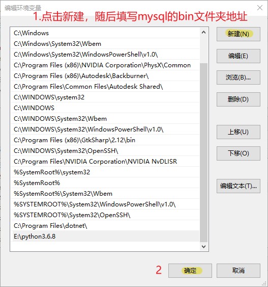4.之后点击新建,填写mssql文件夹里bin文件夹的地址。