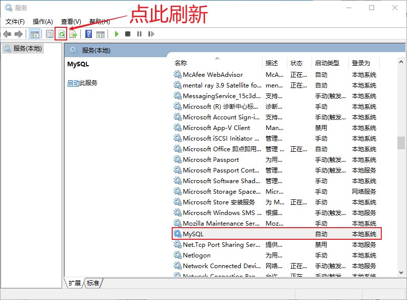 但是现在还仅仅是把MySQL添加到服务中,它还没有运行。