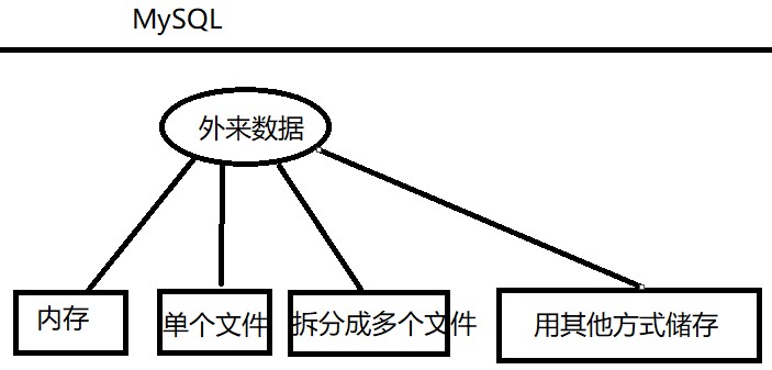 在MySQL中,外来的数据可以以不同的方式存储。可以存储到内存里,也可以存储到硬盘里;可以单独存为一个表,也可以拆分成多个表分别存储;或者还能用其他方式进行存储。