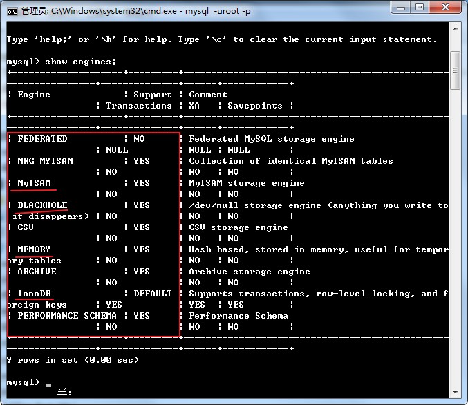 如何查看存储引擎?