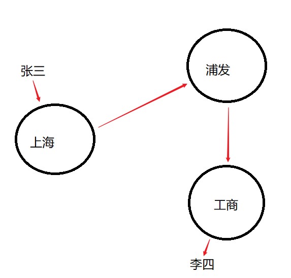 比如说跨行转账,张三想用上海银行的账户通过浦发银行的ATM机给李四的工商银行账户转账。