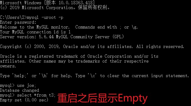 重启MySQL相当于释放了内存空间,保存在内存上的数据自然也随之被抹去。