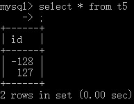 insert into t5 values(-129),(256); # 在表t5中插入值-129和256