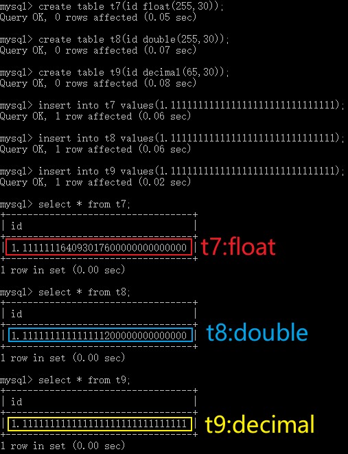 create table t5(id tinyint); # 创建表t5,定义字段id,整型tinyint类型