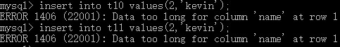insert into t11 values(2,'kevin'); # 在表t11中插入值2,'kevin'