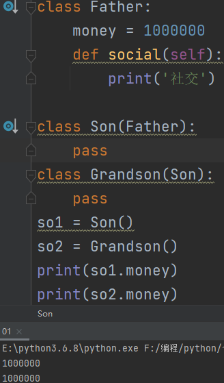 继承:一个类可以继承多个父类并拥有多个父类里所有的东西。