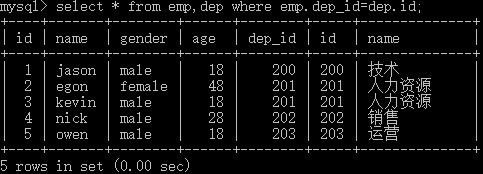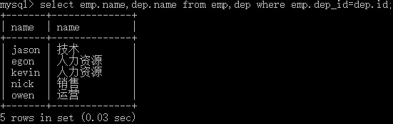 select * from emp,dep where emp.dep_id=dep.id;
