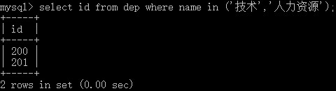 select id from dep where name in ('技术','人力资源');