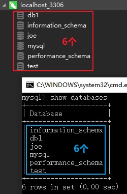 之后就可以看到在左侧栏里出现了"localhost_3306"的选项,双击打开就可以看到本机MySQL程序里的所有库。这样用鼠标点两下,就相当于在cmd中输入了命令"show databases;"
