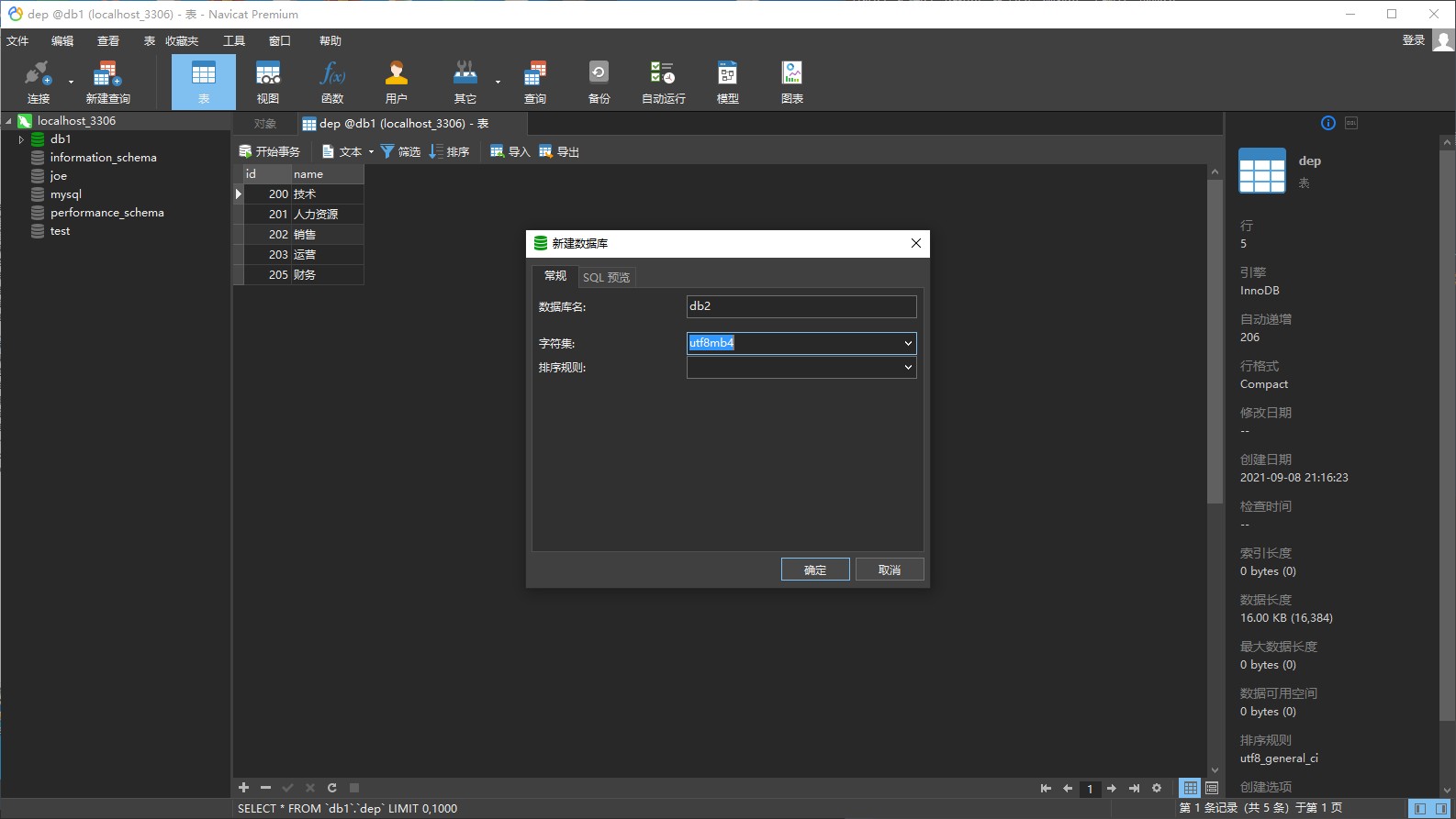 dep表中有序号为205的部门,但是在emp表中没有数据的dep_id是205,于是左连接中,对应205部门的员工数据都是null。