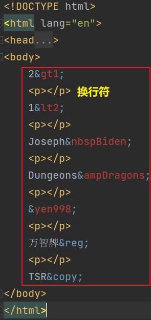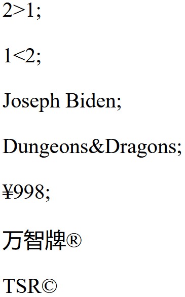 > 大于号 < 小于号 空格 & &符号 ¥ ¥符号 reg; 商标 copy; 版权