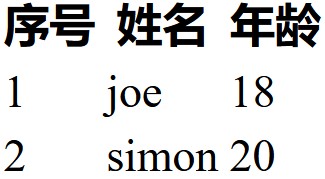 <th>序号</th> <!--定义一个个字段名-->
