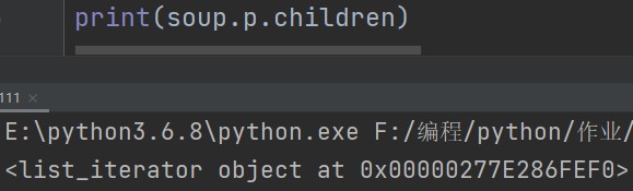 print(soup.p.children) # 获取p标签内部所有的子标签