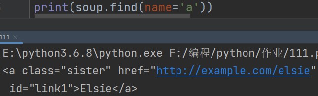 soup.find(name='a') #查找指定标签名为a的标签,默认只找第一个