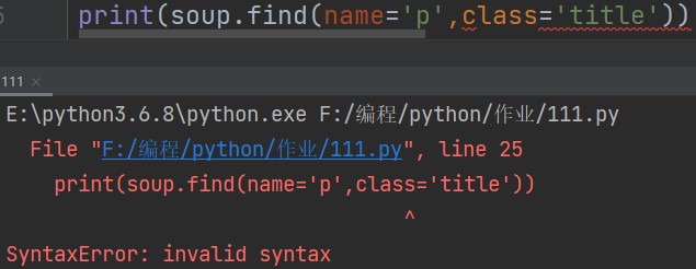 在python面向对象中我们学过类的概念,英语是class。这里我们要筛选的是html中的class。现在的问题就在于:电脑无法识别究竟是要找python中的类还是html中的类。