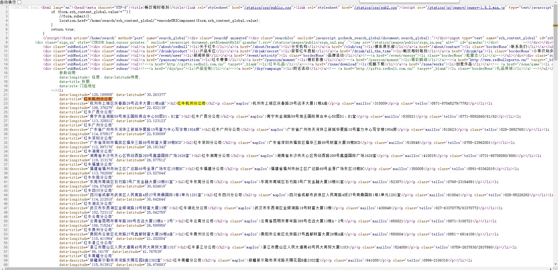 爬取红牛分公司数据