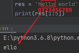 字符串[起始位:终止位] eg: print(res[1:5]) # ello
