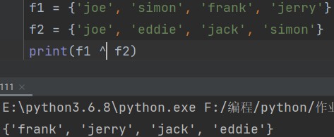 print(f1 ^ f2) # {'frank', 'jerry', 'jack', 'eddie'}