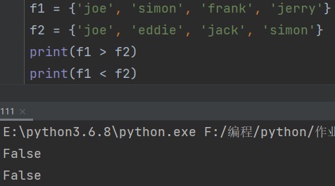 print(f1 > f2) # False print(f1 < f2) # False