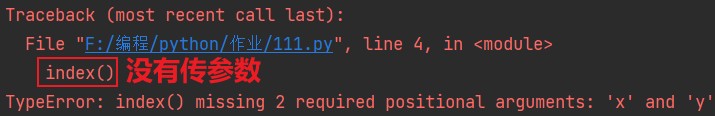 def 函数名(位置形参1, 位置形参2...) 函数需要执行的代码 函数名(位置实参1, 位置实参2) eg: def index(x, y): print(x, y) index() '报错'# 不传不可以 index(1) '报错'# 传少了也不行 index(1,2) # 个数正确可以 index(1,2,3,4,5,6,7) '报错'# 传多了也不行