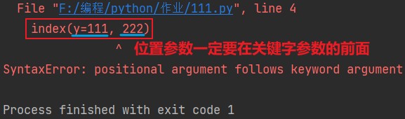 位置参数一定要在关键字参数的前面