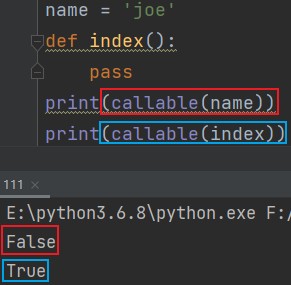 callable(变量名或函数名) eg: name = 'joe' def index(): pass print(callable(name)) # False print(callable(index)) # True
