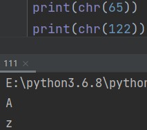 chr(ASCII码中的编号) eg: print(chr(65)) # A print(chr(122)) # z