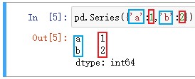 pd.Series([数据1,数据2...]) eg: pd.Series([1,2,3,4]) # 类似于numpy中的array([1,2,3,4])