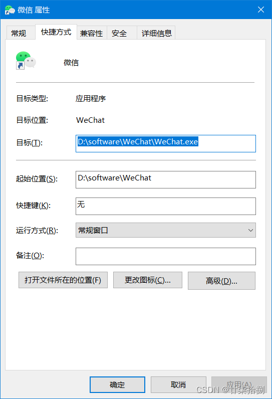 ①右键点击微信图标–属性-目标,ctrl+c 复制下来