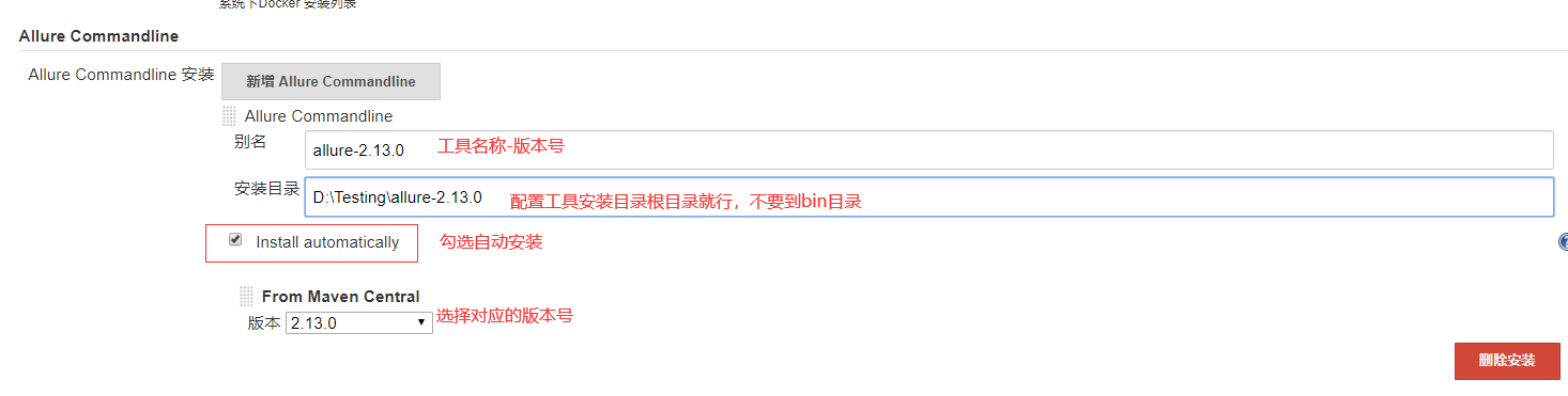 在系统管理--全局工具配置页面中配置allure和jdk的相关信息