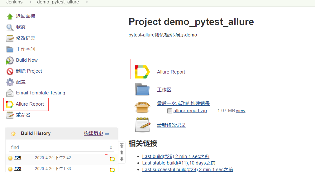manage jenkins ----> manage plugins 找到 Allure Jenkins Plugin 安装,重启jenkins即可