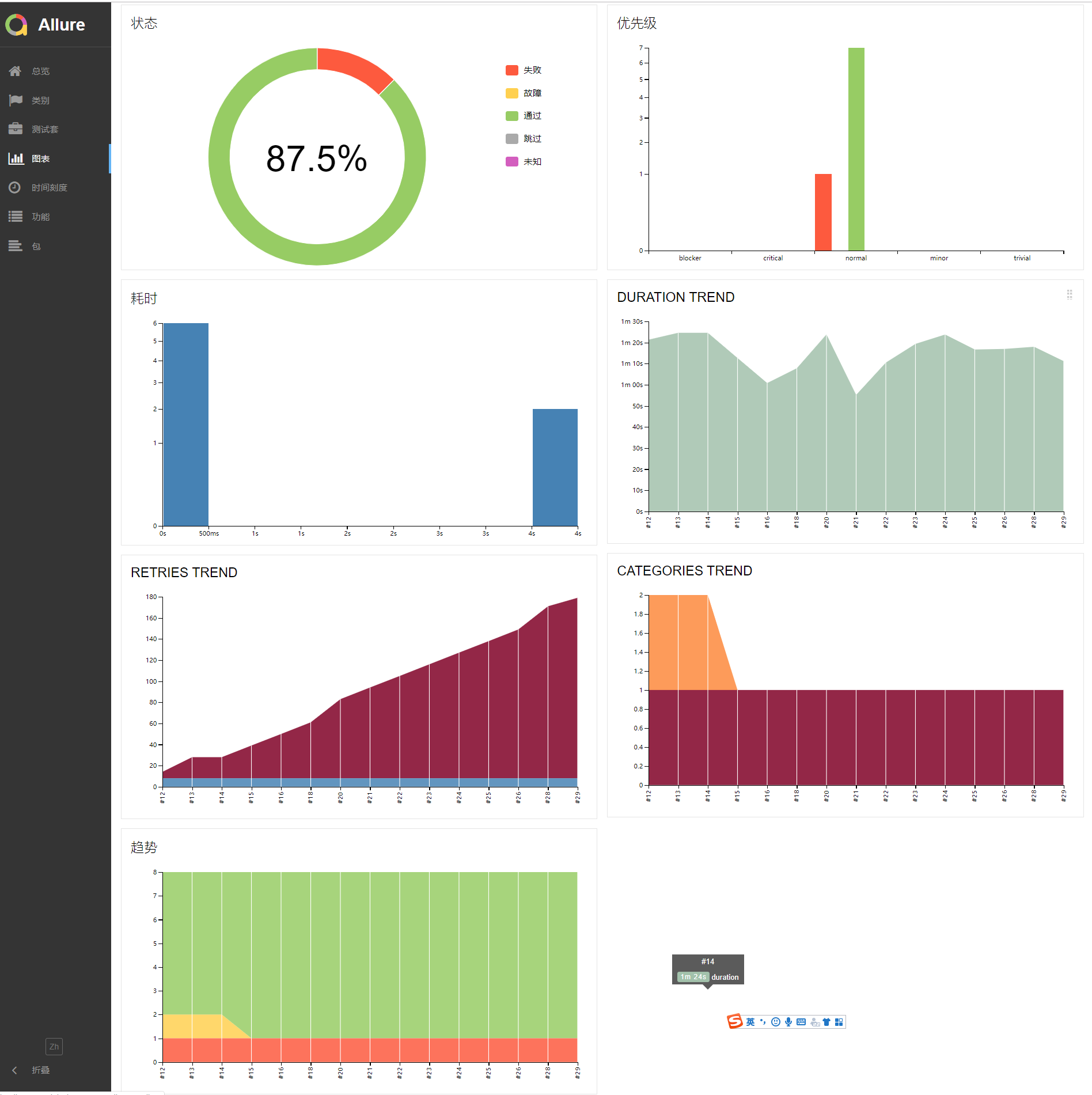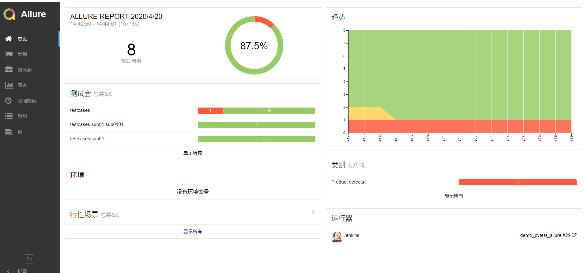 配置保存后,点击构建,待构建完成,一个漂亮的allure测试报告就生成啦
