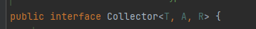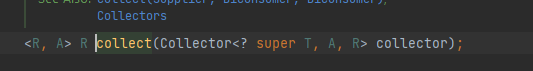 collect方法会接受一个collector 作为 parameter,由a as accumulator作为中间收集器,T作为操作类型,R作为返回类型,也就是说R由collector决定