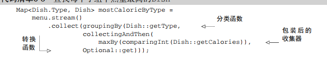 两个groupingby, 第一次的apply后的值作为key值,后面加个返回d,类型的collector, 也就是说后面那次(已经被groupingby分流的数据)不一定是groupingby,也可以是上面的reducing