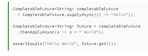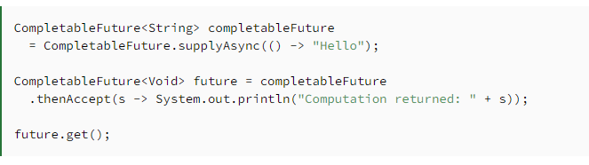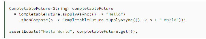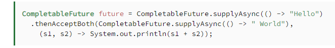 即对结果的异步编程,可以直接通过thenAccept、thenApply、thenCompose等方式将前面异步处理的结果交给另外一个异步事件处理线程来处理。