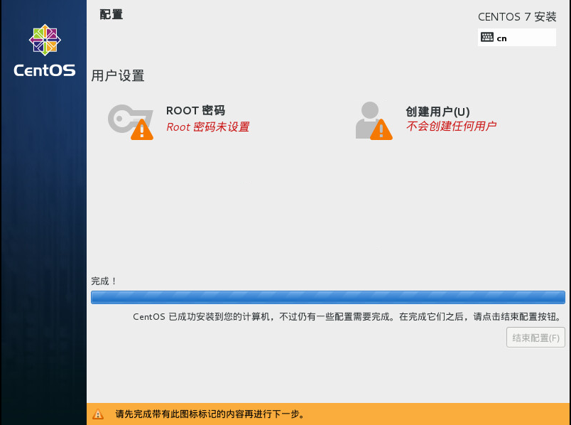 1.8 设定好Root密码后,在“配置”界面,等待安装包完成安装(共297个),完成后点击“结束配置”。