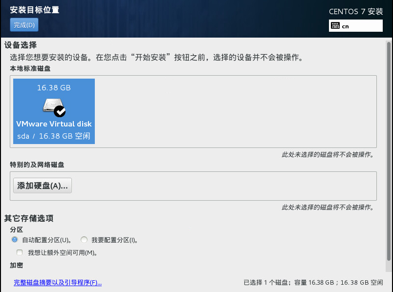 1.4 点击"安装位置",选择系统需要安装到的硬盘,点击“完成”。