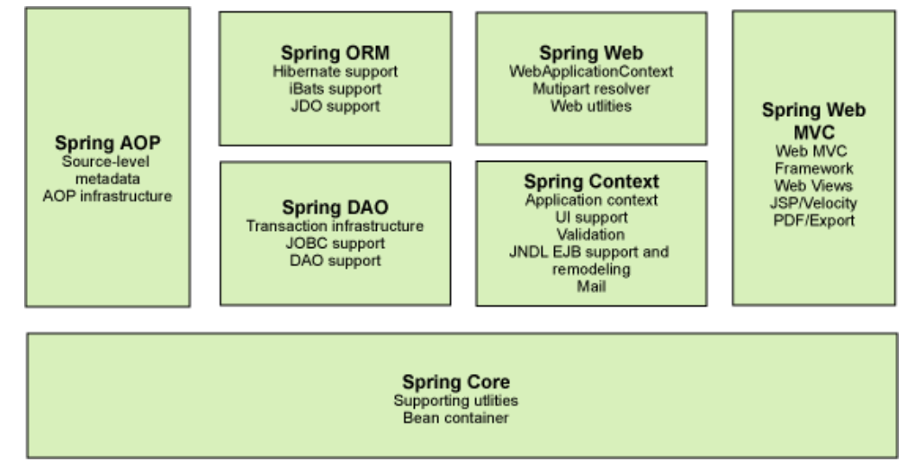 对象实体映射(Spring ORM):提供了整合ORM框架实现对象实体相互映射的功能