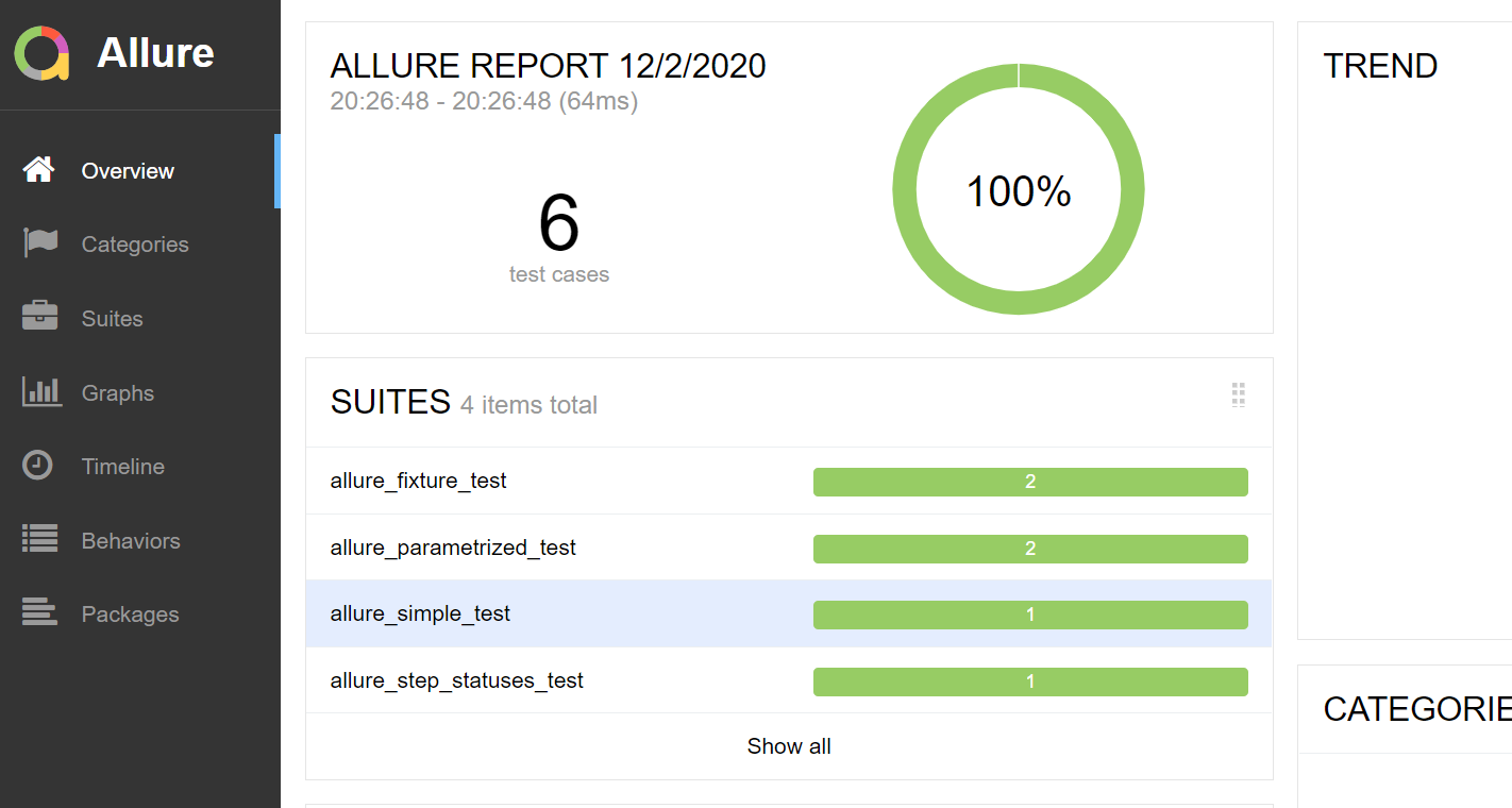 然后就是生成allure的网页服务并弹出显示报告的首页