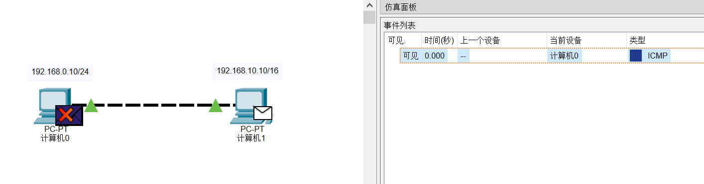 - 计算机0,IP地址:192.168.0.10,子网掩码 255.255.255.0