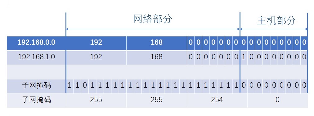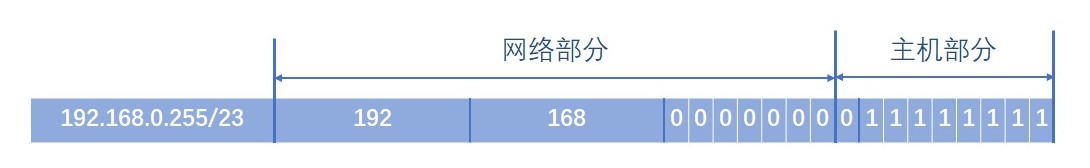 网络部分有23位,主机部分有9位,子网掩码23位,此时的新网段为 192.168.0.0/23。