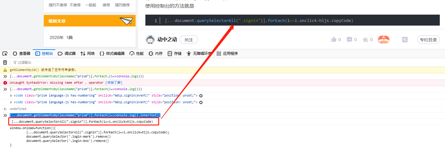 浏览器按F12打开控制台选中要复制的代码处 如图